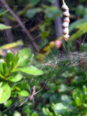 It appears that the spider who lives on our back porch is expecting.
