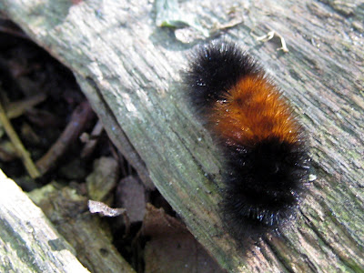 This is the second woolly bear caterpillar I’ve found this autumn. The first had a much more pronounced band of brown, which I believe indicates a mild winter?