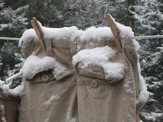 Some time later, I look outside, and whattayaknow, there’s snow on the pants.